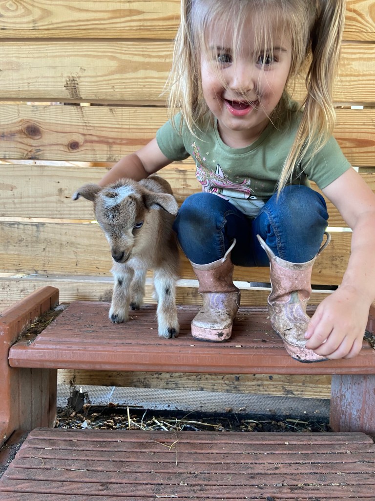 My daughter was by my side everyday. She helped me feed, raise, and care for over 200 animals. We had 8 acres of land to explore with a creek, blueberry fields, a horse pasture, kids playgrounds, indoor spaces for us to get out of the heat, ponds, and often got to interact with all forms of wildlife.